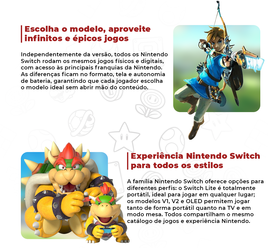 Além disso, esta edição especial vem com um design exclusivo inspirado no mundo de Zelda, com detalhes em ouro e a emblemática Triforce gravada no dock e no Joy-Con. Você não vai querer perder a chance de possuir este item de colecionador único!