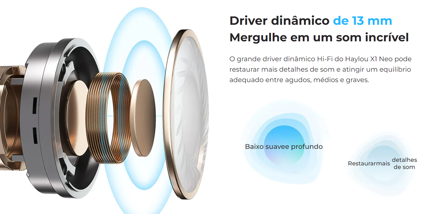 Haylou X1 Neo é um fone de ouvido sem fio que oferece som de alta qualidade e conforto durante todo o dia, com uma bateria de longa duração e controle intuitivo por toque. Além disso, é resistente ao suor, tornando-o perfeito para uso durante atividades físicas intensas. Com o Haylou X1 Neo, você não vai querer parar de ouvir!