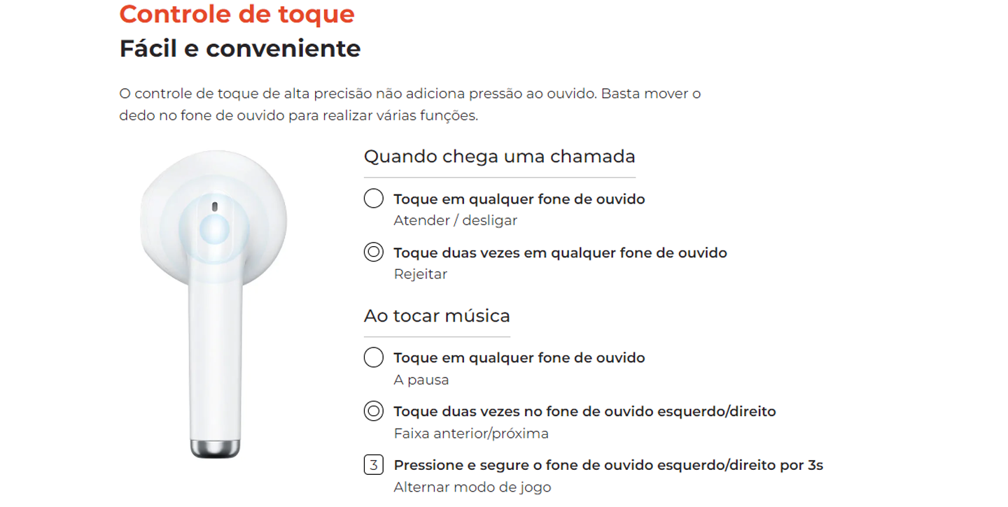 Tipo: Fones de ouvido intra-auriculares TWS Bluetooth, controle touch
