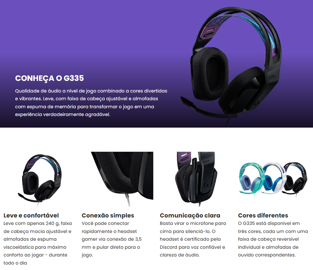 Compatível com PC e console: O Headset Gamer G335 é compatível com PlayStation 5, PS4, Xbox One, Xbox Series X | S e Nintendo Switch com conexão de áudio de 3,5 mm